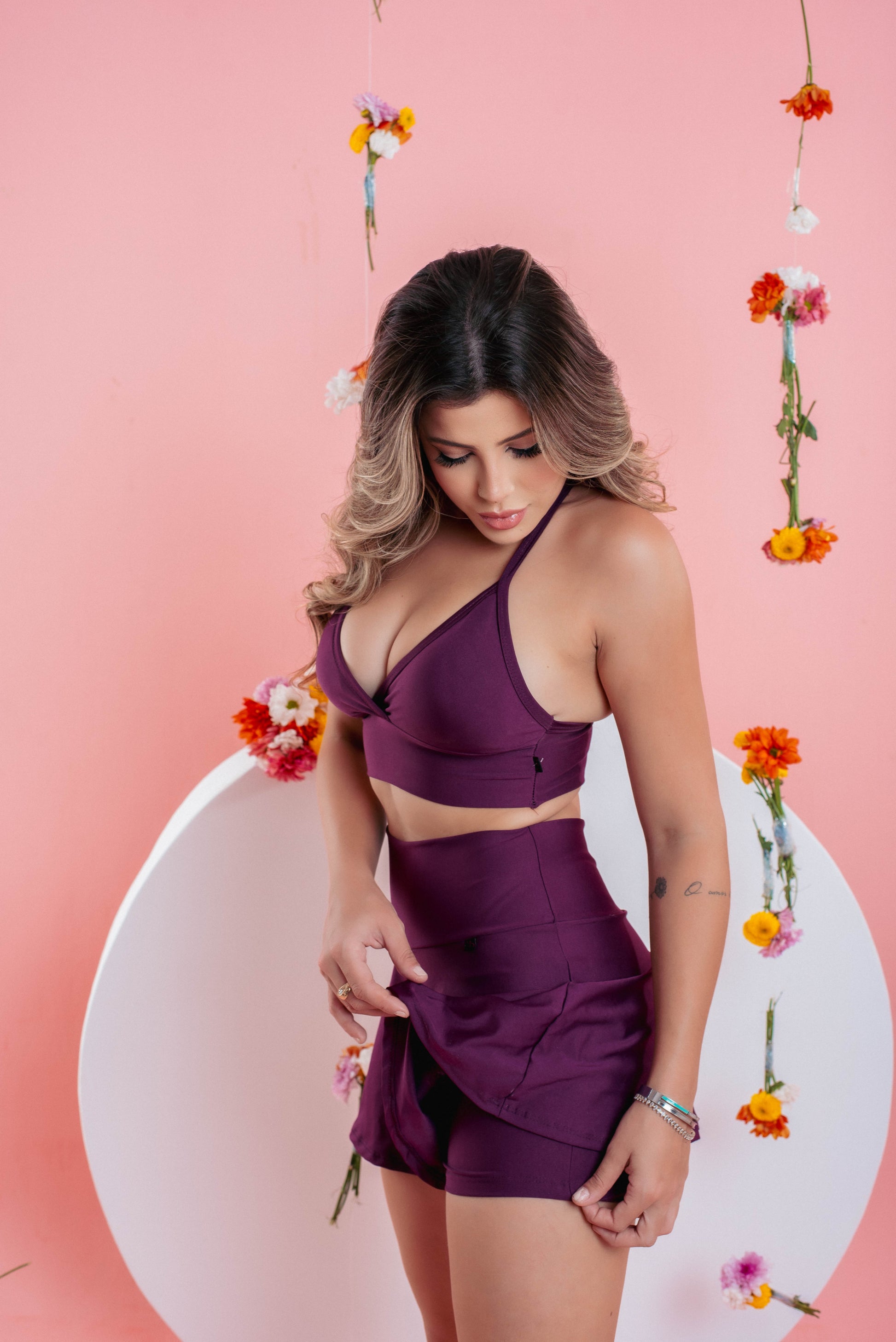 - Suporte e Segurança: O top oferece sustentação ideal para exercícios de alta intensidade, enquanto o short saia garante estilo e conforto.