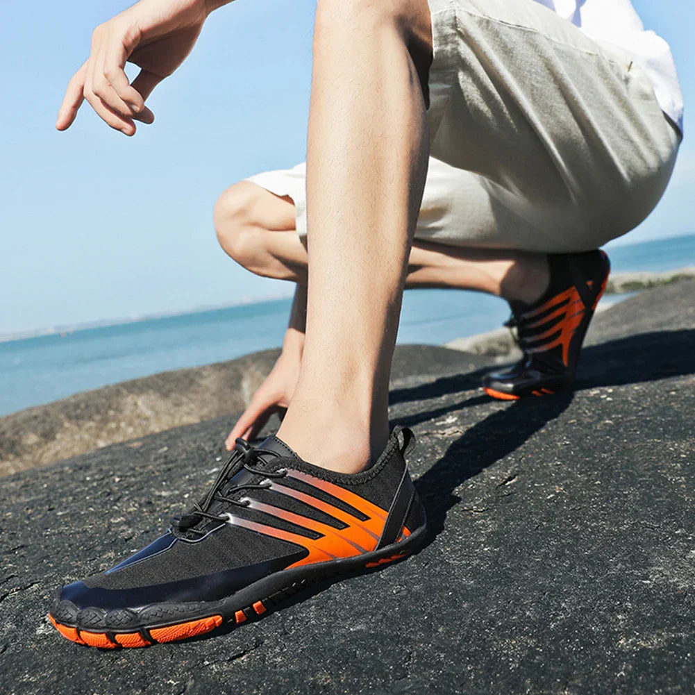 Explore ambientes aquáticos com confiança usando Calçados Aquáticos. Projetados para oferecer aderência e proteção em superfícies molhadas, estes sapatos são ideais para natação, snorkeling e outras atividades aquáticas. Sua sola antiderrapante garante estabilidade, permitindo movimentos ágeis e seguros dentro d'água. Prepare-se para uma experiência sem igual, onde o conforto e o desempenho se encontram.